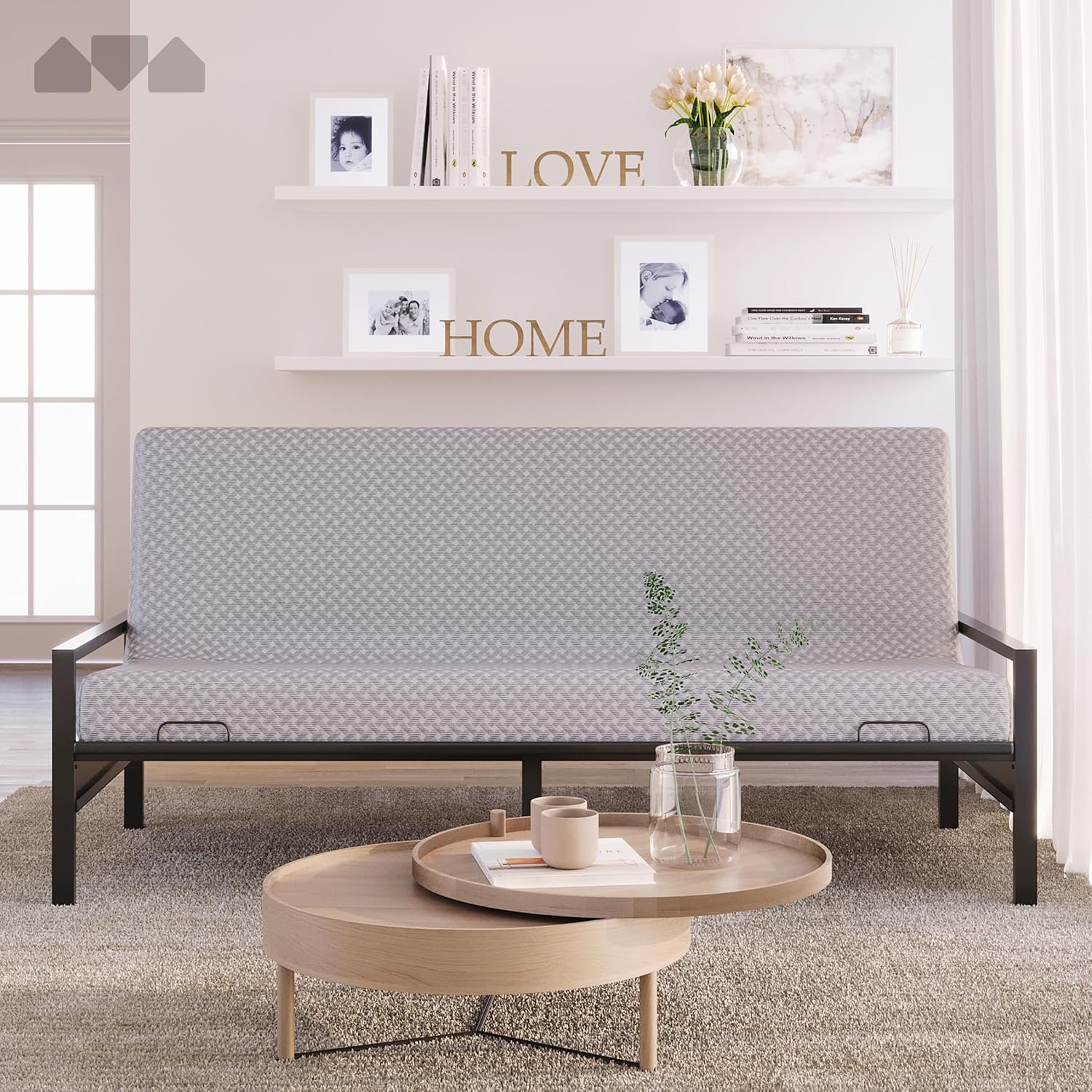 Designed for real life, the Milliard Full Size Metal Futon Bed Frame transforms the way you live, lounge, and host. Whether you’re working with limited space or looking for flexible function, this modern black futon brings both form and feeling into your home. Its clean low-profile design suits any room, while the sturdy metal mesh base and smart retainer clips keep your mattress in place - no wobble, no hassle. Relax with morning coffee, binge-watch your favorite show, or welcome last-minute guests with a smooth switch to a full-size bed. Shipped in one compact box, our full futon frame assembles easily without tools - ideal for solo renters, busy students, or first-time homeowners. Compatible with any standard full futon mattress (sold separately), this frame isn’t just furniture - it’s peace of mind, versatility, and style all in one. Upgrade your space without the stress and enjoy everyday moments more comfortably with our Milliard Sofa Daybed.