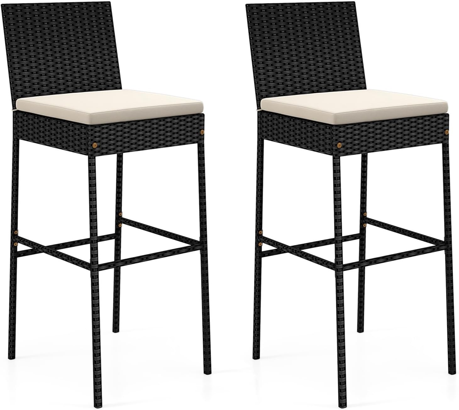 RELAX4LIFE Outdoor Bar Stools Set of 4 - Wicker Rattan Patio Barstools Tall Chairs w/Back, Footrest, Seat Cushions & Metal Frame, 400LBS Weight Capacity, 30’’ Counter Height Bar Stools (2, Mix Brown)